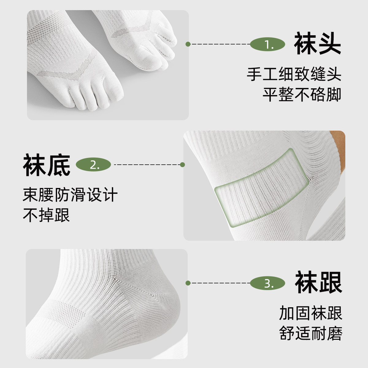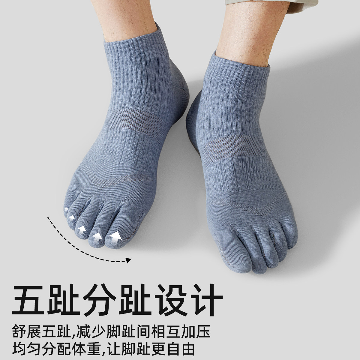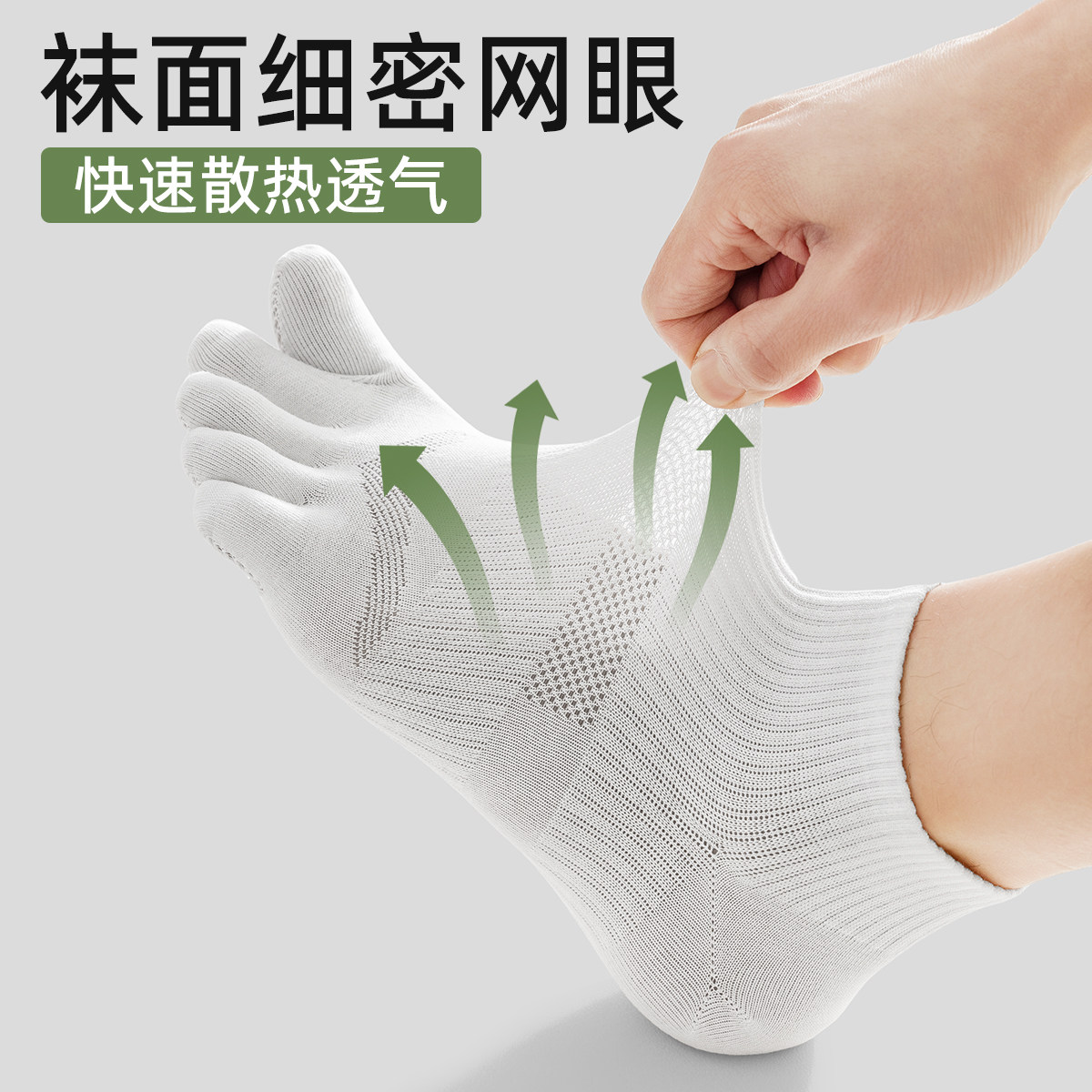 佐印袜子男夏季 10A抗菌防臭五指短袜网眼吸汗透气高弹分趾袜 薄款