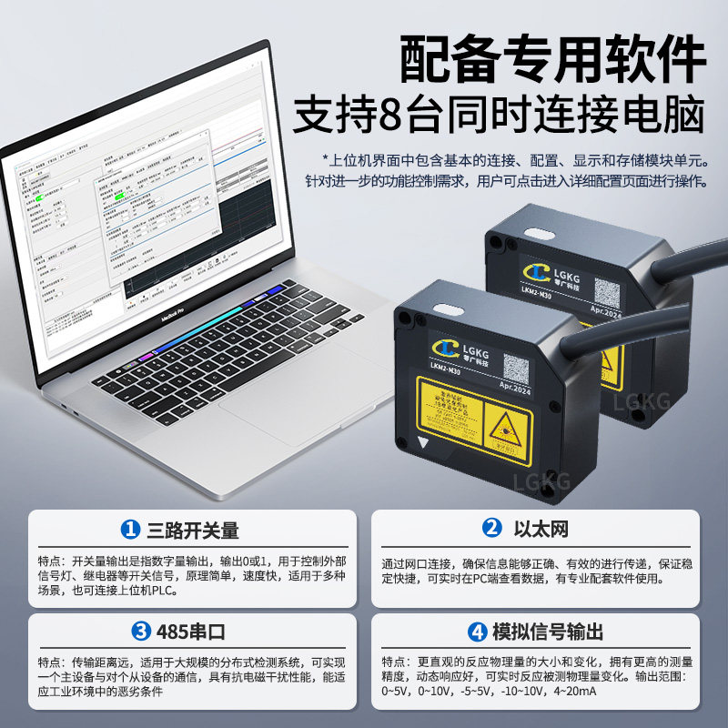 高精度激光位移测距传感器可连电脑PLC继电器开关模拟量RS485输出
