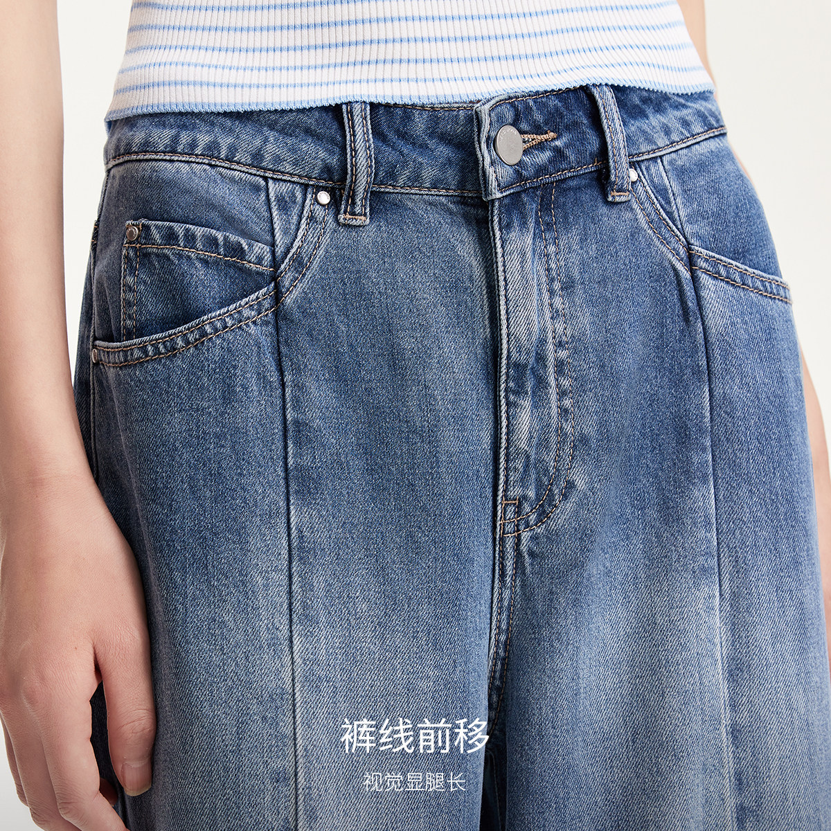 线前移阔腿裤 女2026春夏天丝含莱赛尔裤 325232014 Moda牛仔裤 Vero