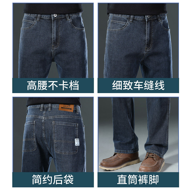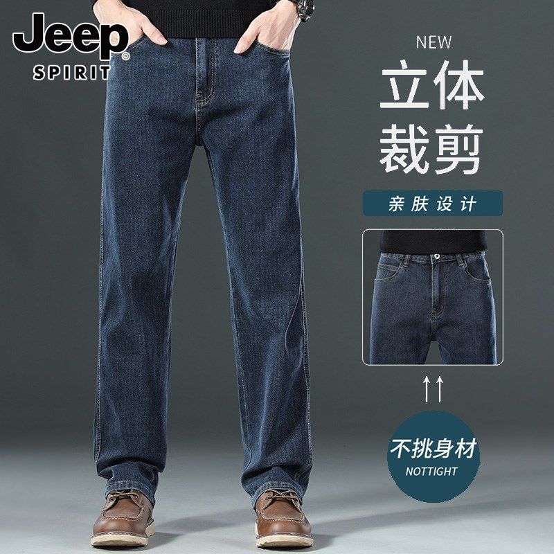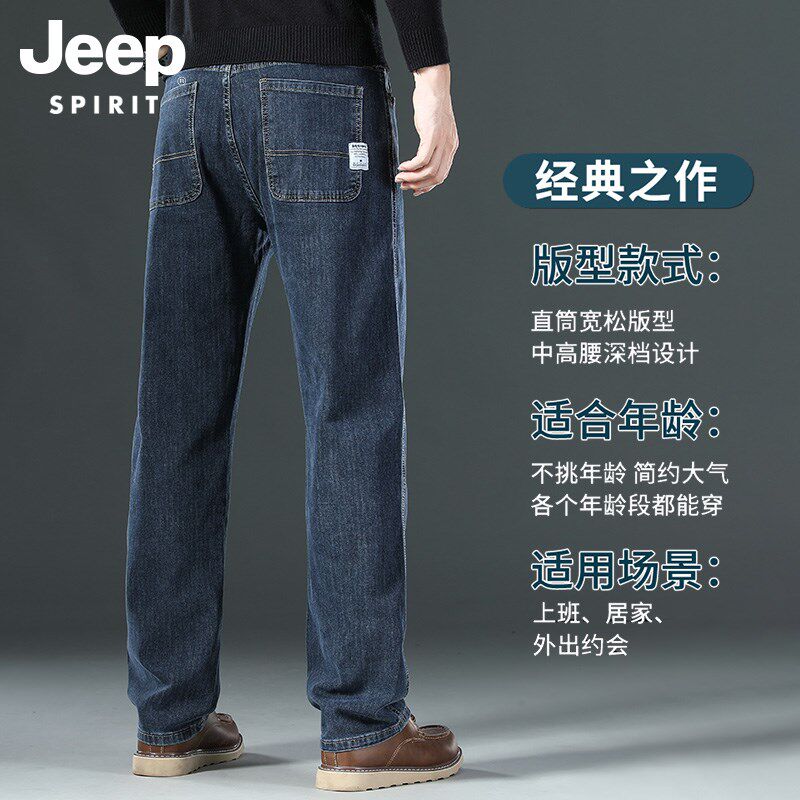 新款 裤 子爸爸加厚男裤 吉普官方直筒男士 加绒男装 男款 秋冬季 牛仔裤