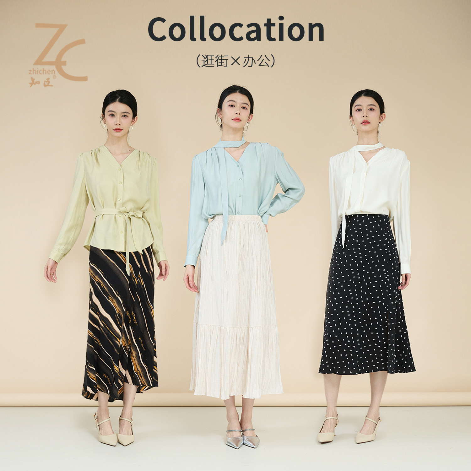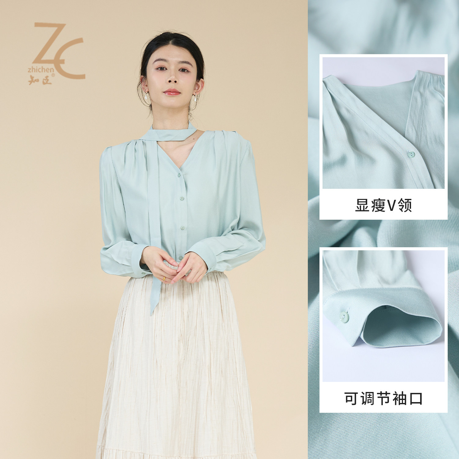 女 知臣春季 设计感V领带飘带衬衫 多色法式 T25831058 新品