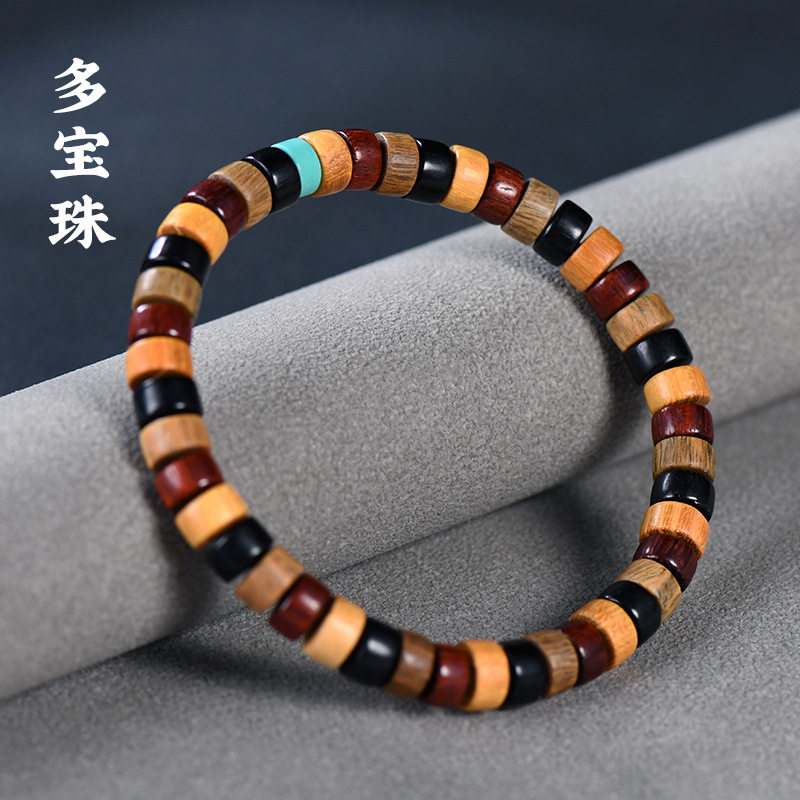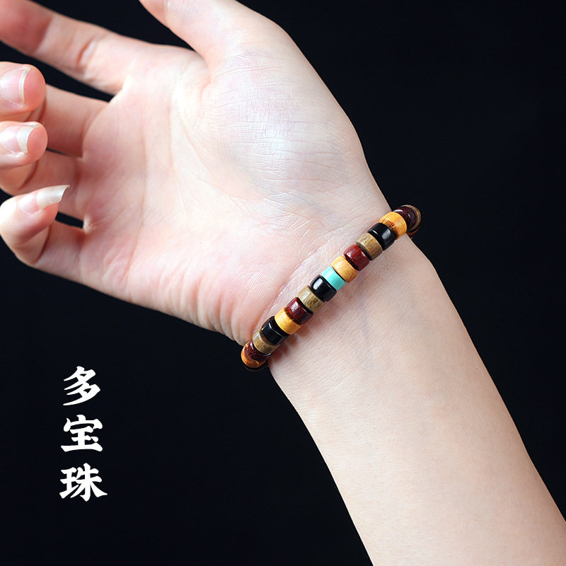 多宝珠彩色珠串手链药片珠情侣弹力绳手环佛珠文玩木质手串民族风