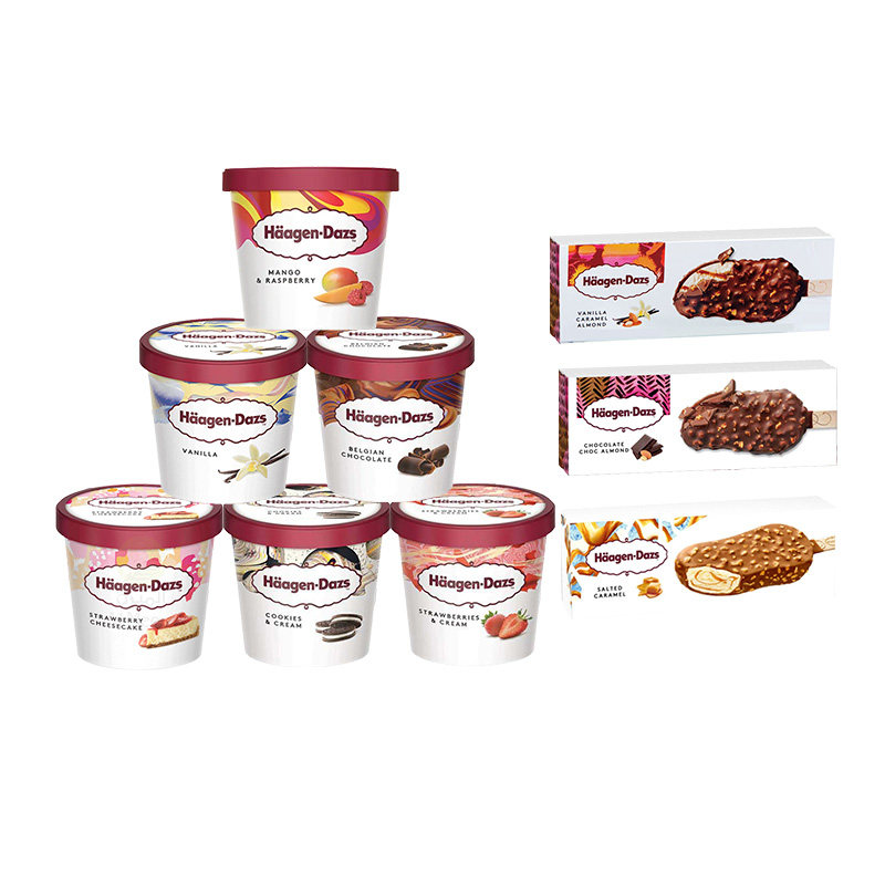 进口脆皮条冰激凌英文版 哈根达斯小杯冰淇淋法国原装 10杯