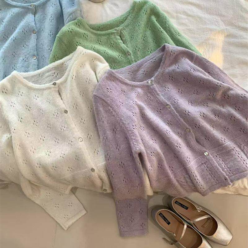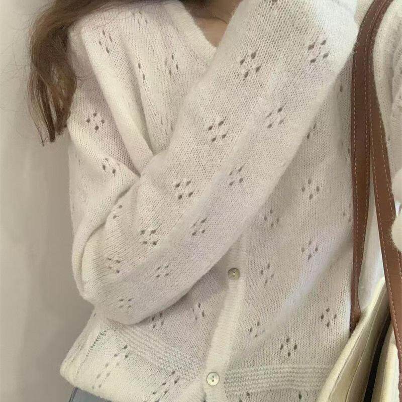 女 减龄宽松气质镂空钩花甜妹bi备针织开衫 SUSAN十三行春新款 法式