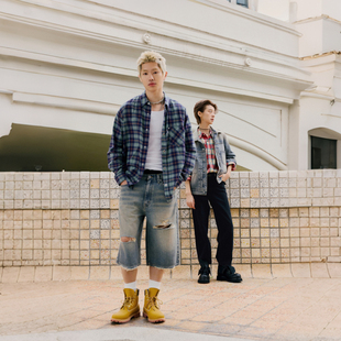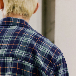外套男小众宽松复古小清新衬衣 衬衫 Holocene美式 潮牌蓝色格子长袖