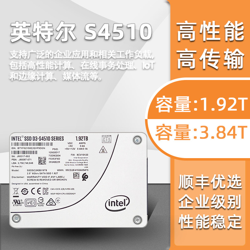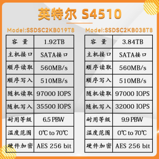 全新零售版 Intel 3.84T S4510系列1.92T 企业级固态硬盘 英特尔