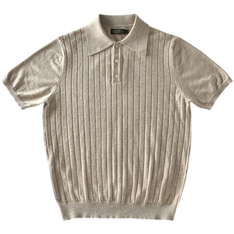 复古上衣阿美咔叽夏季 T恤老钱风美式 短袖 柴米针织翻领Polo男士