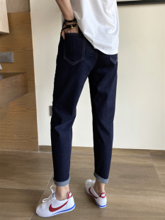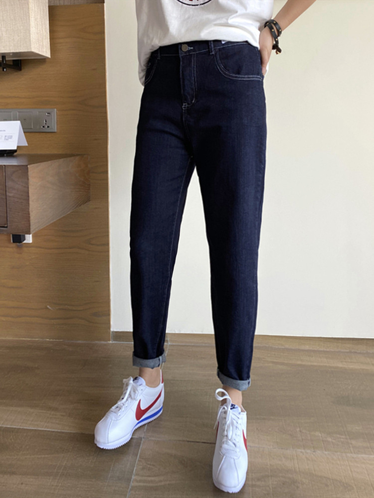 女微胖mm梨型身材遮胯显瘦哈伦老爹裤 大码 高腰弹力九分牛仔萝卜裤