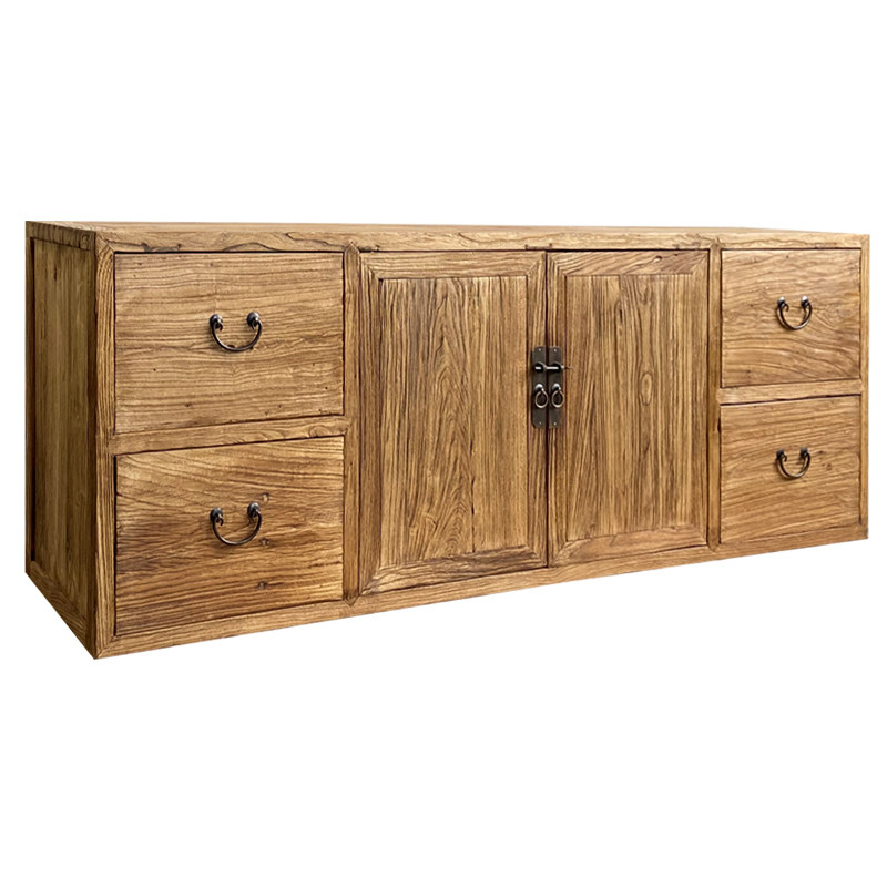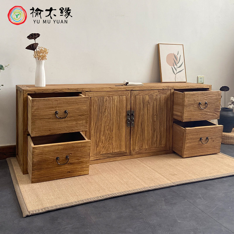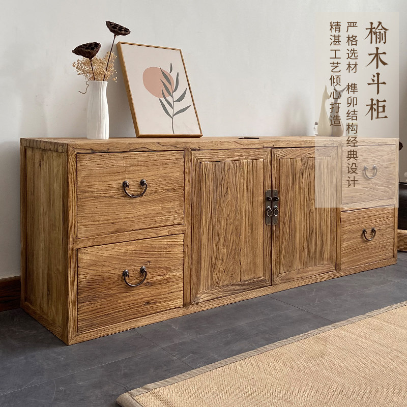 中古风客厅实木电视柜书柜餐边柜边柜法式 复古模块化组合柜置物柜