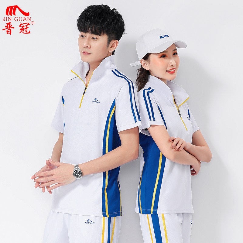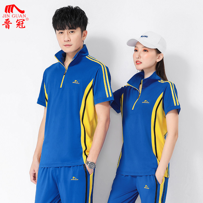 晋冠中老年广场舞健身半袖 T恤运动服女男夏南韩丝 上衣两件套短袖