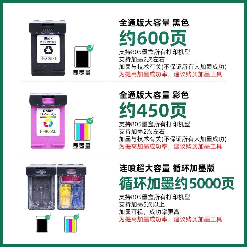 2330 2332 2723 1210 2729大容量易加墨打印机墨盒805 2722 1212 2721 适用惠普HP805XL墨盒Deskjet 2720