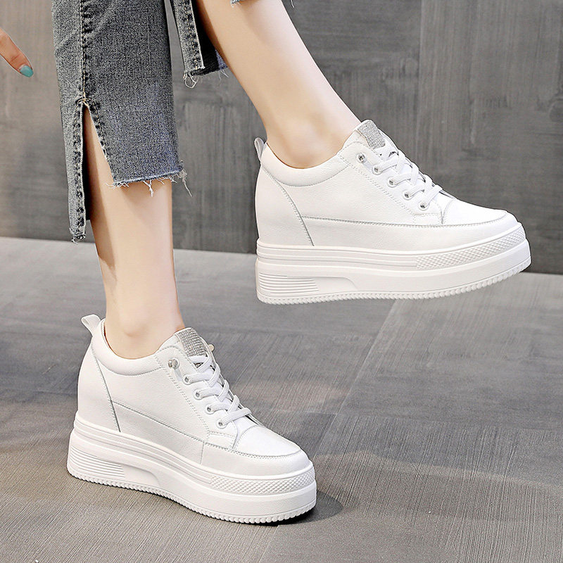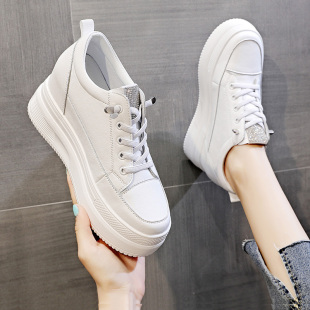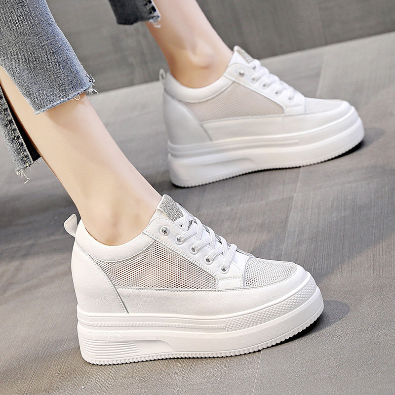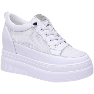 松糕女鞋 水钻套脚内增高小白鞋 夏季 厚底2025新款 子 女网面透气薄款