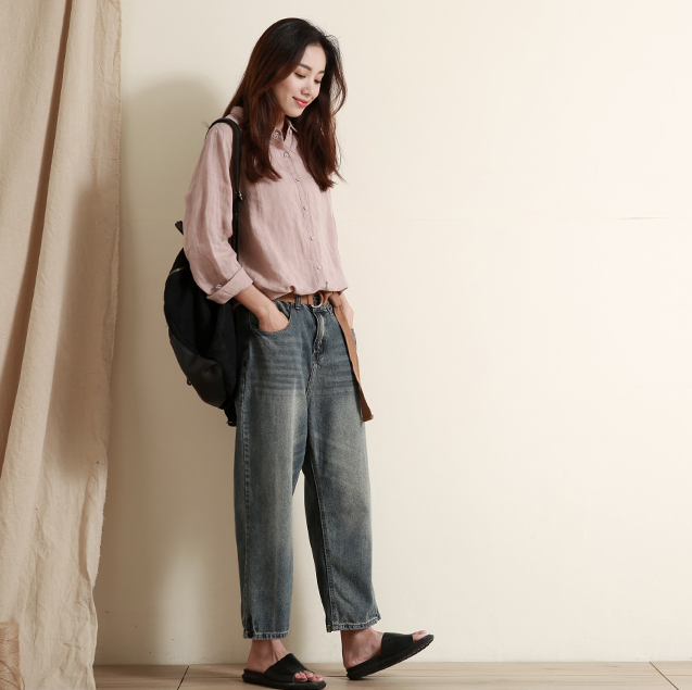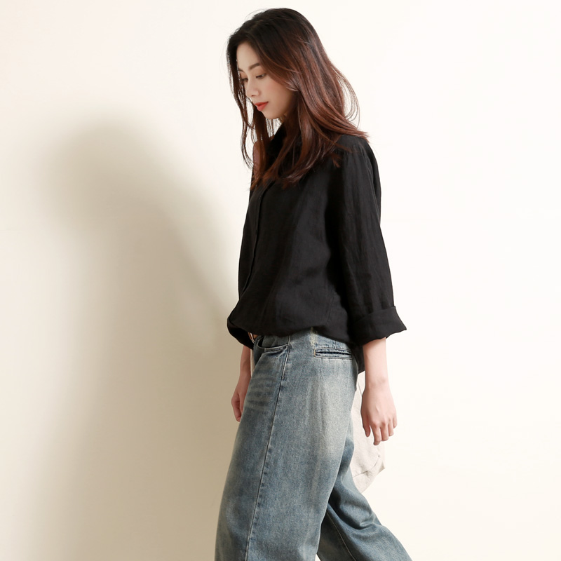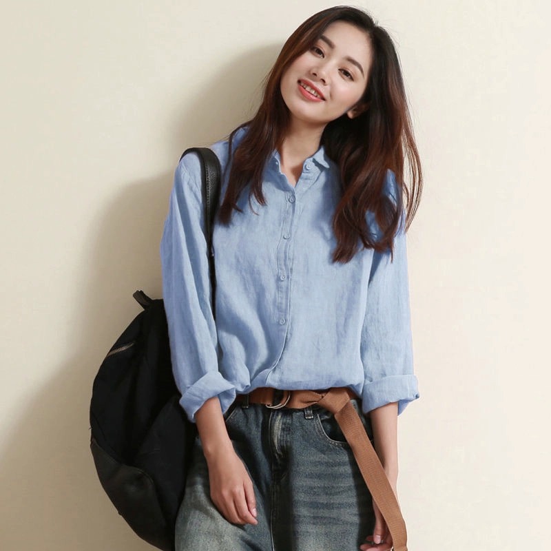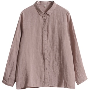 亚麻棉麻衬衫 上衣设计感小众宽松长袖 女 新款 文艺棉麻打底衬衣女装