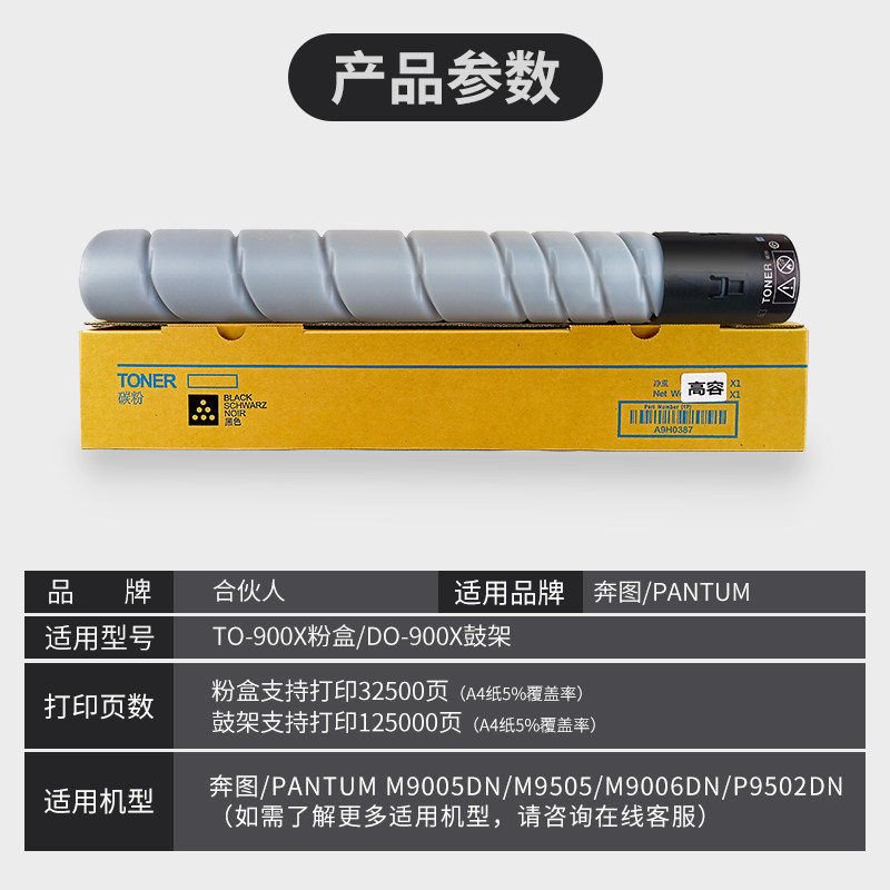 900硒鼓架M9006DN墨粉盒P9502DN粉筒M9005DN激光打印机M9505奔腾晒鼓 900X碳粉盒DO 合伙人适用PANTUM 奔图TO