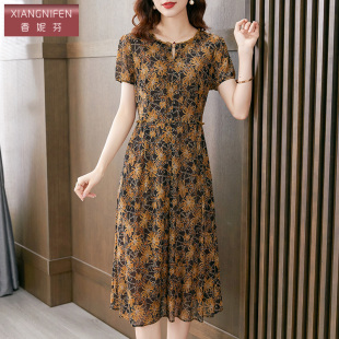收腰碎花裙 气质修身 香妮芬高端台湾网纱休闲连衣裙女夏季 2026新款