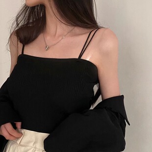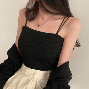 夏季 女装 针织上衣潮 纯色百搭简约打底吊带背心胖妹妹大码 2024新款