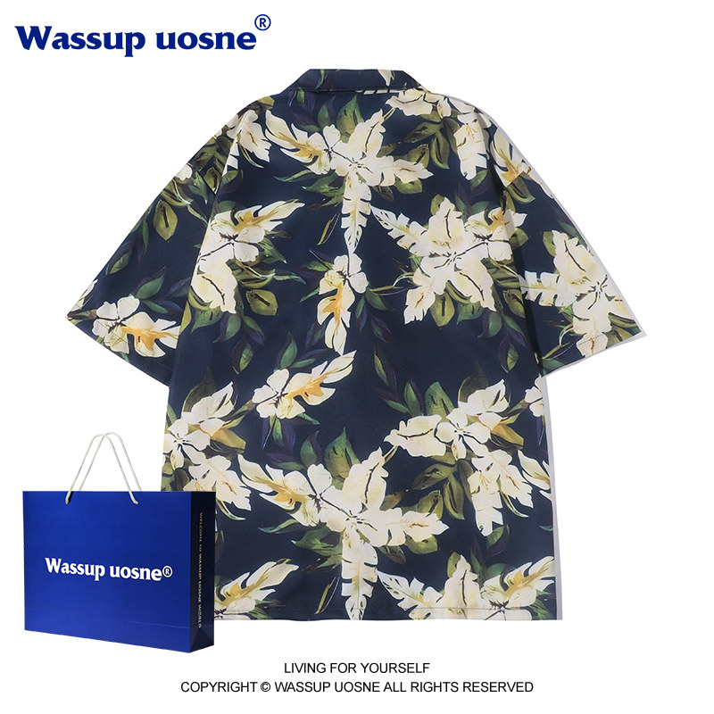 衬衣 男夏沙滩风情侣款 WASSUP港风vintage复古巴领宽松短袖 花衬衫