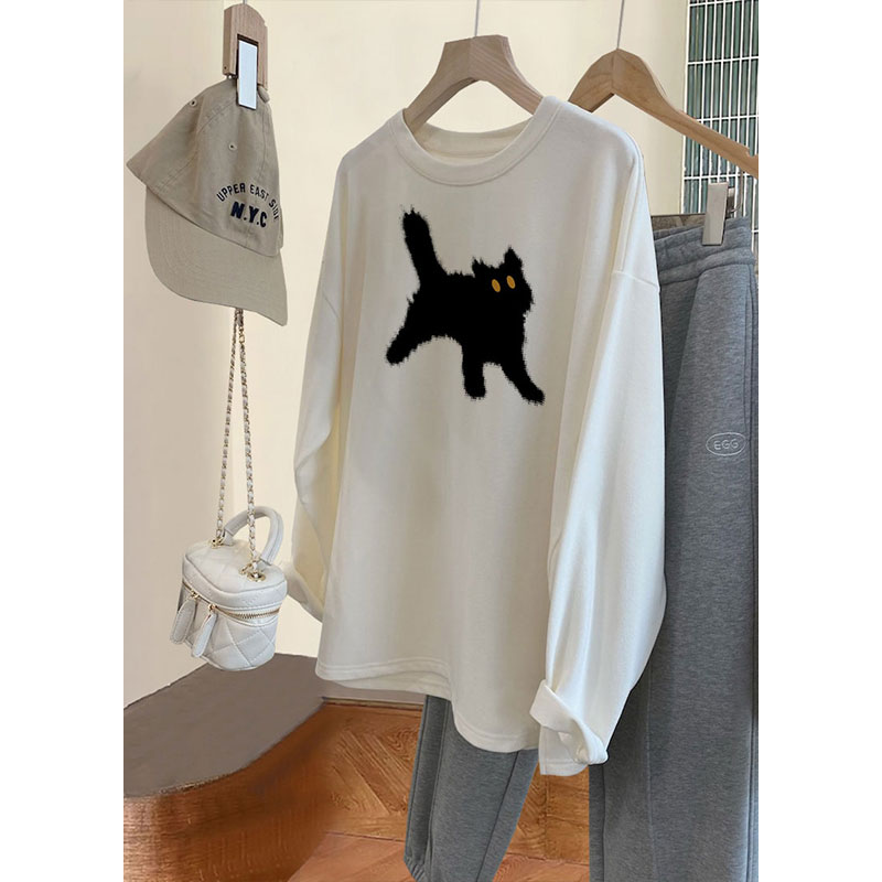 t恤女装 洋气打底衫 2025早春新款 欧货大版 上衣 秋冬季 白色纯棉长袖