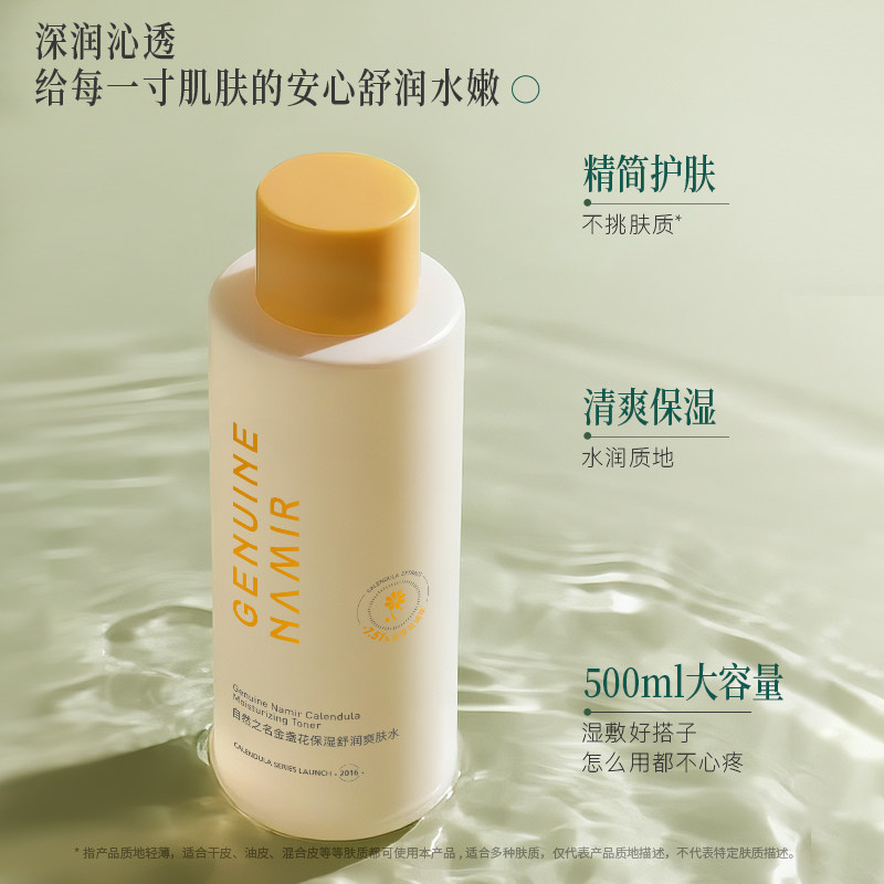 自然之名金盏花保湿 舒润爽肤水湿敷化妆水大容量500ml官方正品