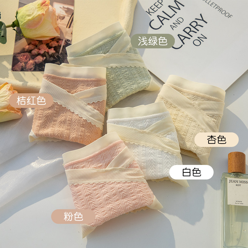 纯棉抗菌裆绑带 性感纯欲低腰三角内裤 3条98元 好奇蜜斯蕾丝女法式