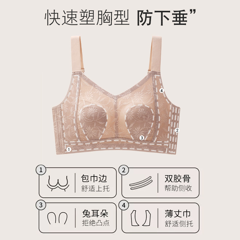法式 蕾丝内衣女聚拢小胸显大不空杯无痕收副乳防下垂少女文胸罩