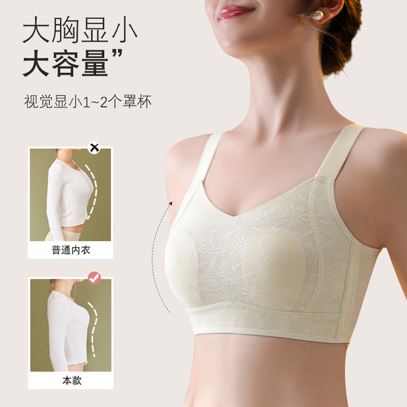 7档调节提拉内衣女大胸显小全罩杯薄款 聚拢收副乳防下垂束胸文胸