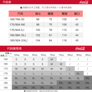 男黑色裤 可口可乐直筒裤 子春秋运动宽松卫裤 休闲裤 Coca 长裤 Cola