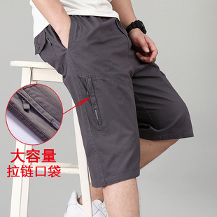 新款 纯棉工装 子男裤 七分裤 多口袋裤 夏季 宽松透气短裤 男士 休闲裤