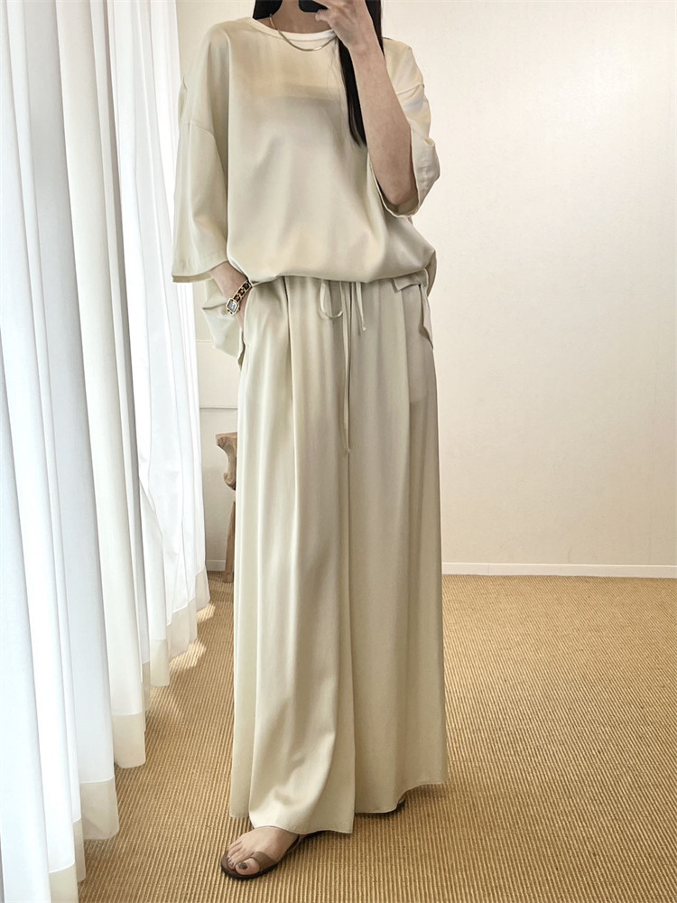 大A逛东京Chaos日本代购 3色 光滑柔软丝绸宽松阔腿休闲裤