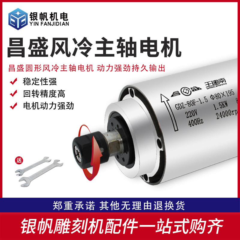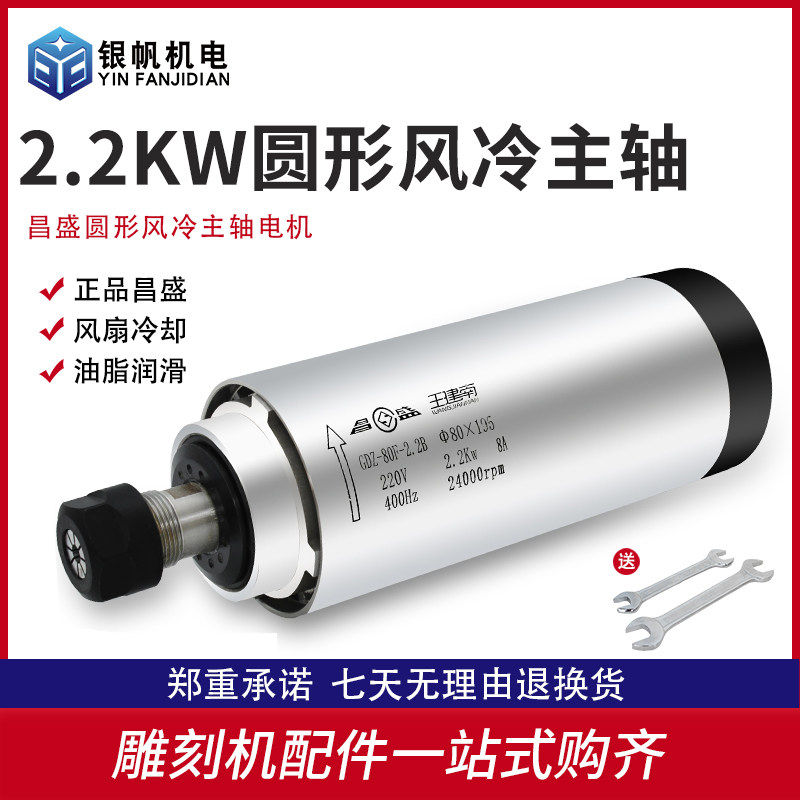 昌盛圆形风冷主轴800w 2.2kw四轴承雕刻机通用高速风冷电机 1.5kw