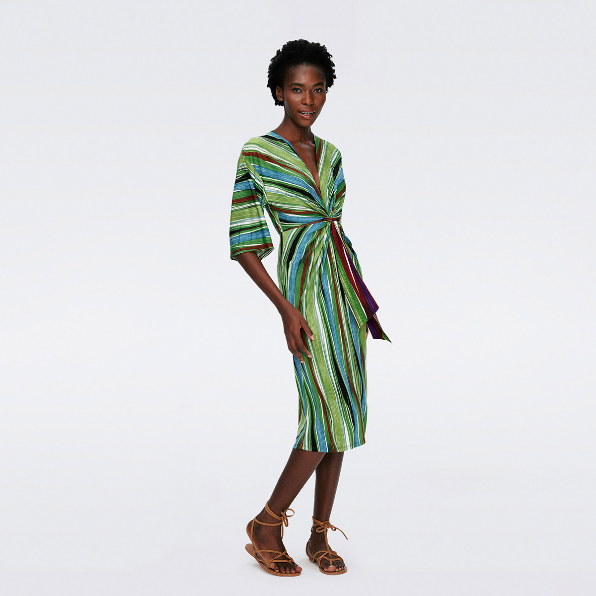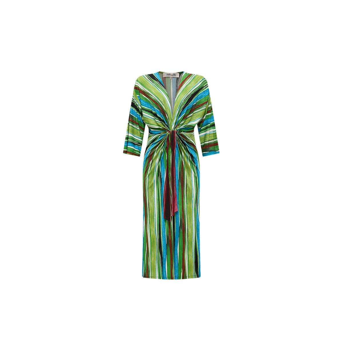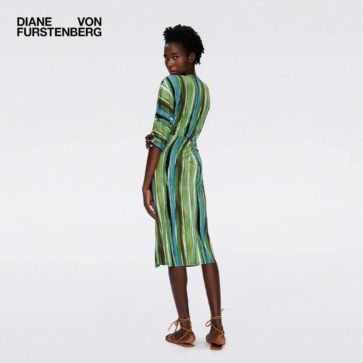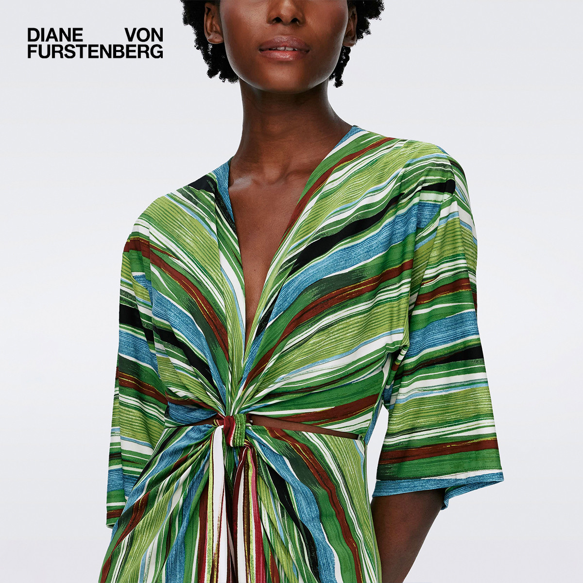 条纹印花连衣裙DL1S023 DVF绿色度假V领中长款 博主同款