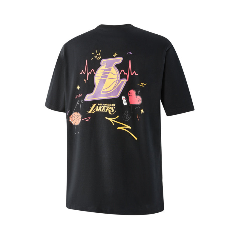 运动休闲重磅宽松黑色T恤 春季 NBA球队文化系列 湖人队