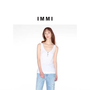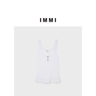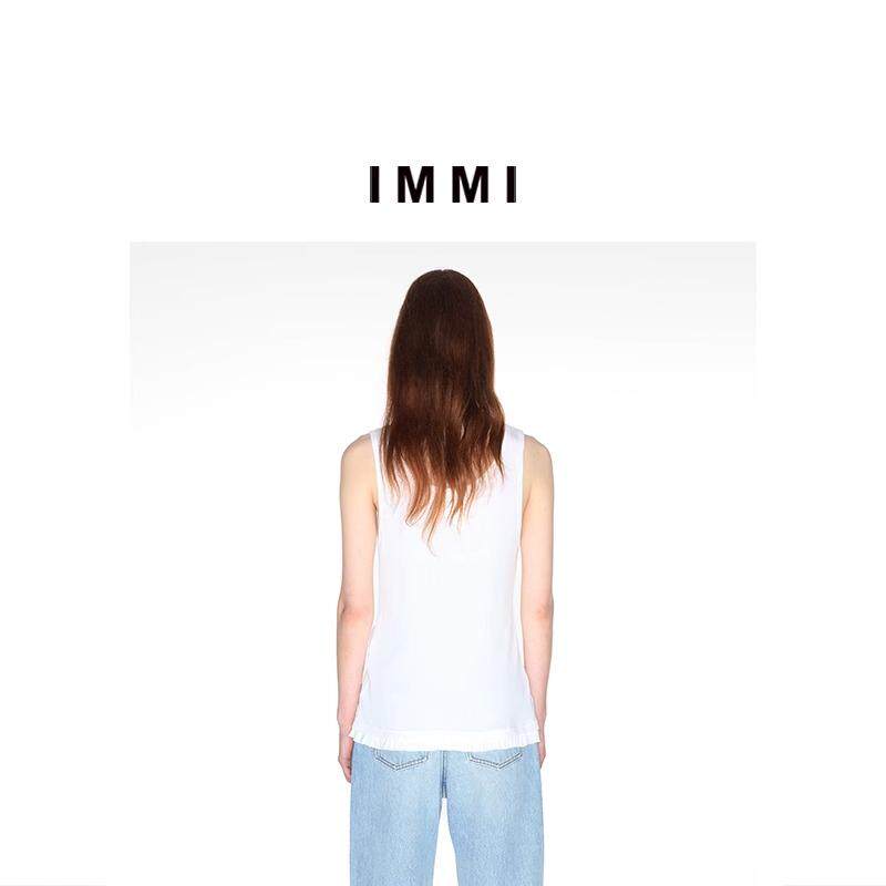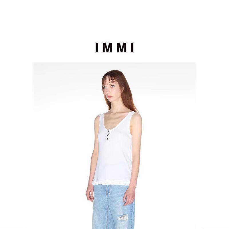 女士荷叶边下摆U领罗纹背心银泰百货精品300124 新品 IMMI 秋季