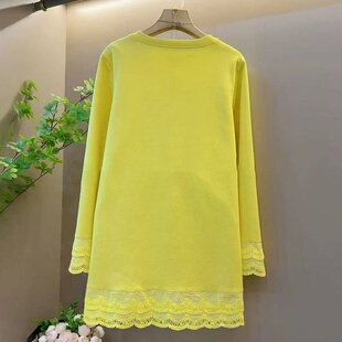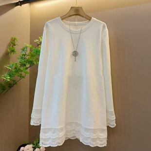 纯色甜美风ins女款 春秋季 胖妹妹300斤特大码 时尚 蕾丝拼接T恤 美式