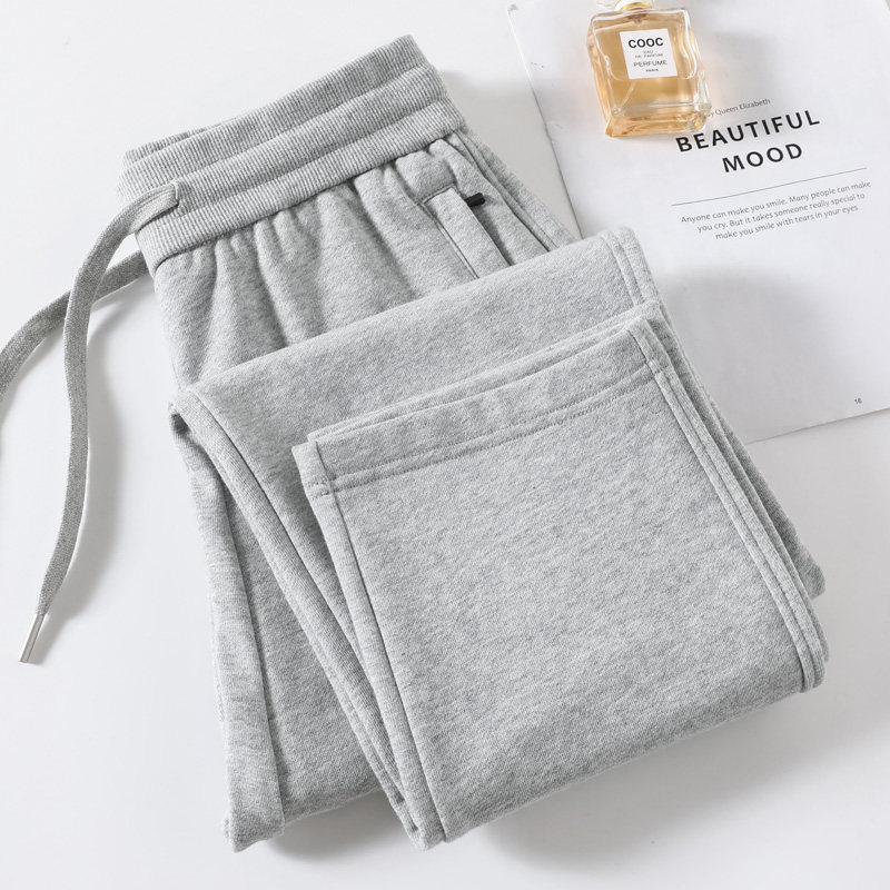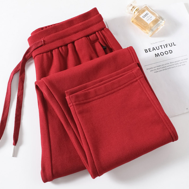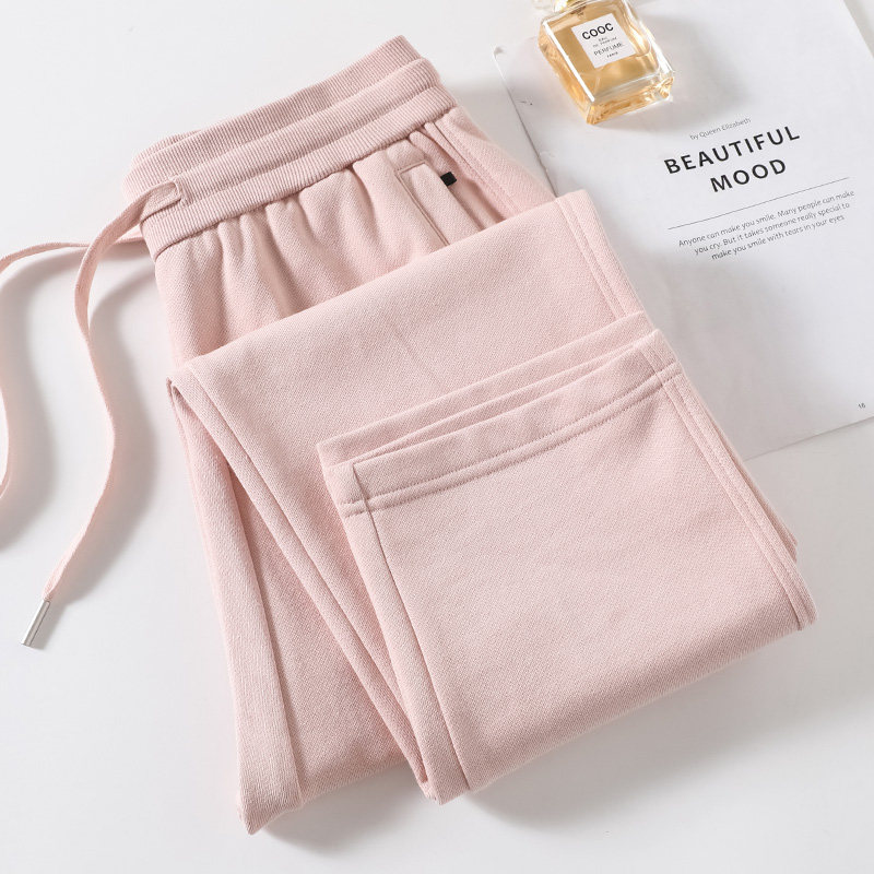宽松哈伦裤 杏色纯棉加绒冬季 休闲直筒运动裤 女2026新款 子 高腰卫裤