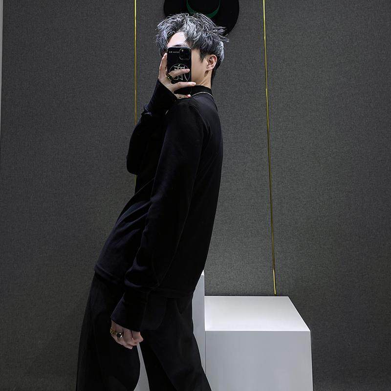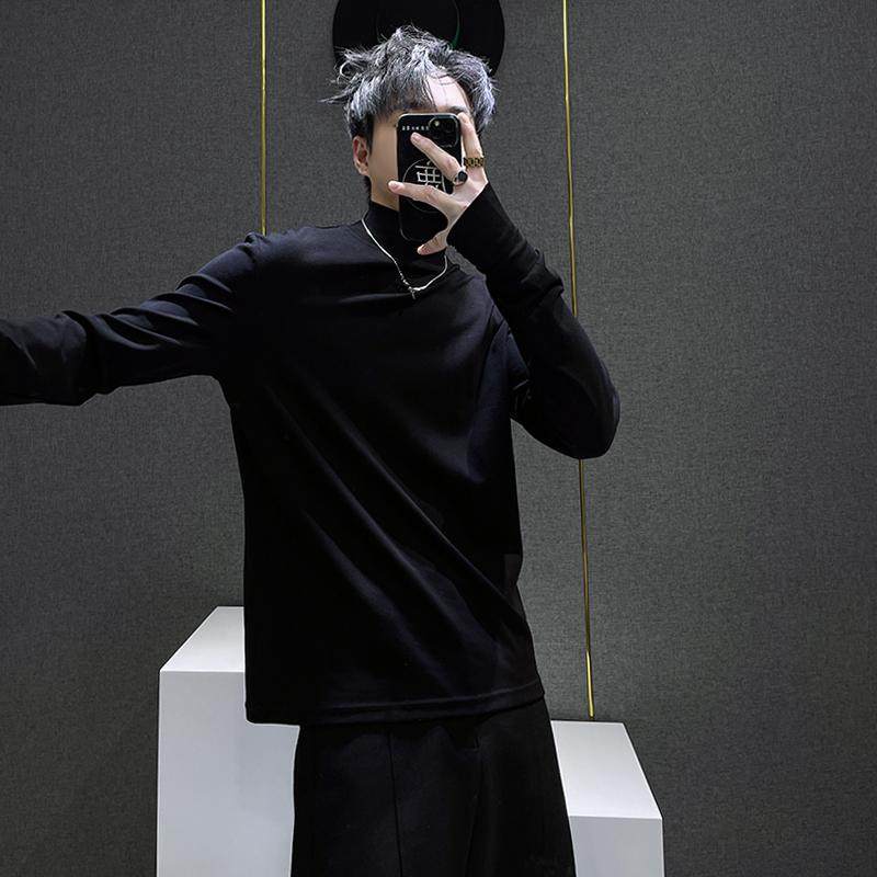 打底衫 秋季 长袖 宽松半高领T恤男纯色内搭潮流休闲基础款 上衣韩版