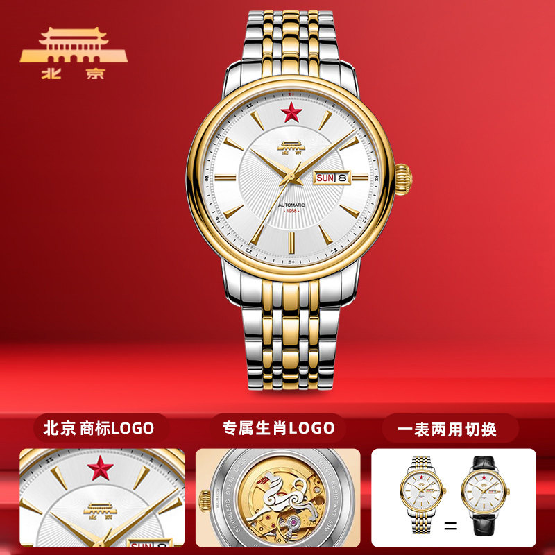 防水透底腕表送礼 北京手表十二生肖全自动机械表男士 新年礼物