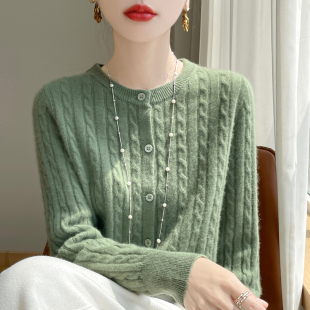 百搭针织开衫 清仓折扣断码 圆领纯色毛衣长袖 女秋冬季 外搭 纯羊毛衫