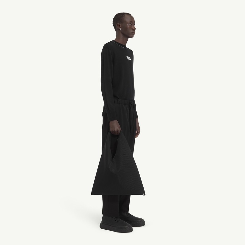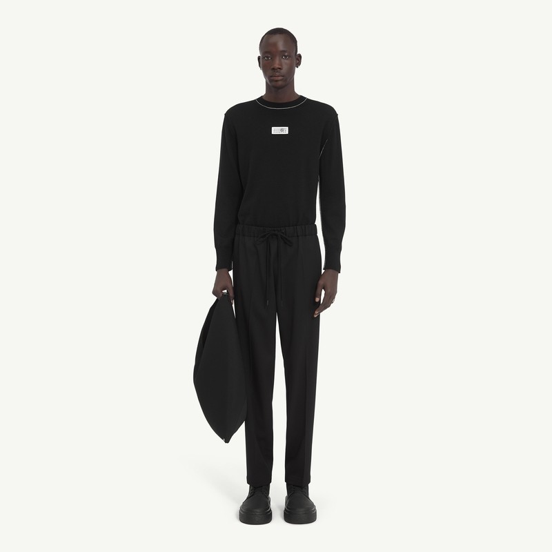 裤 长裤 子 简约通勤舒适直筒裤 MM6抽绳黑色宽松休闲裤