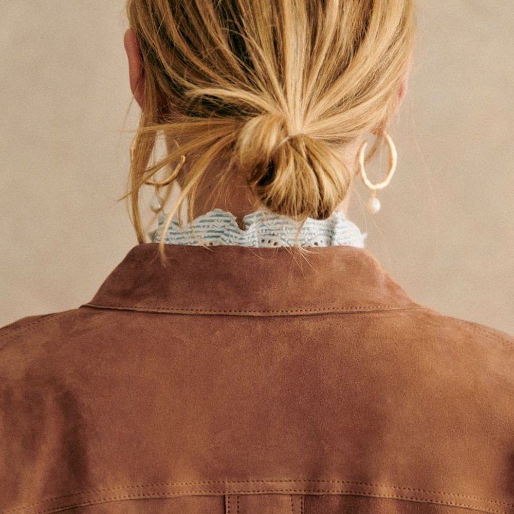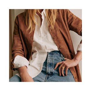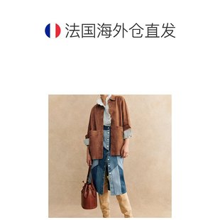自营欧洲直邮Sezane 休闲保暖翻领外套 女士驼色羊皮夹克时尚