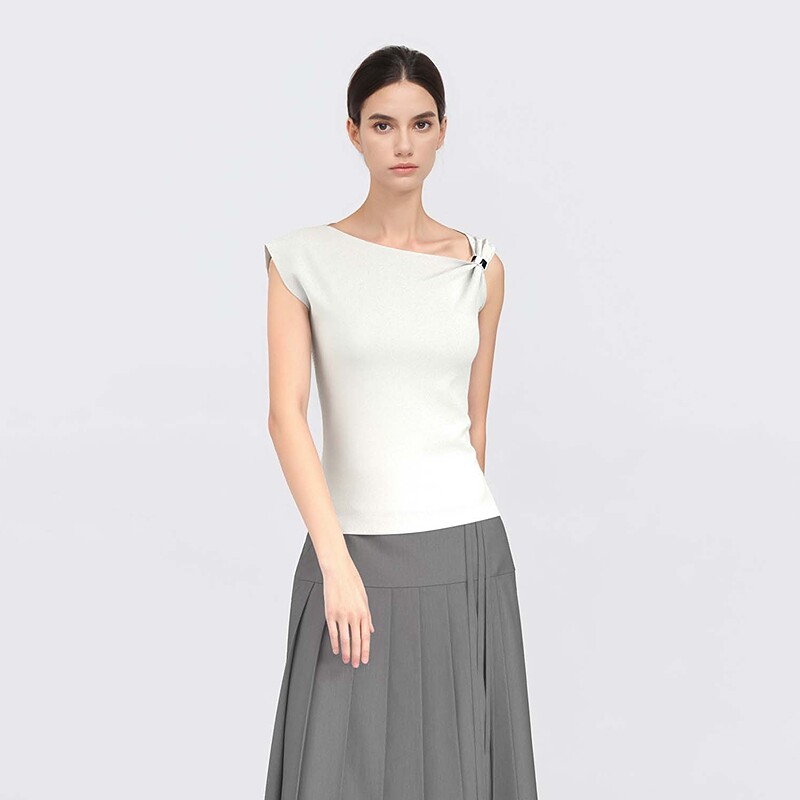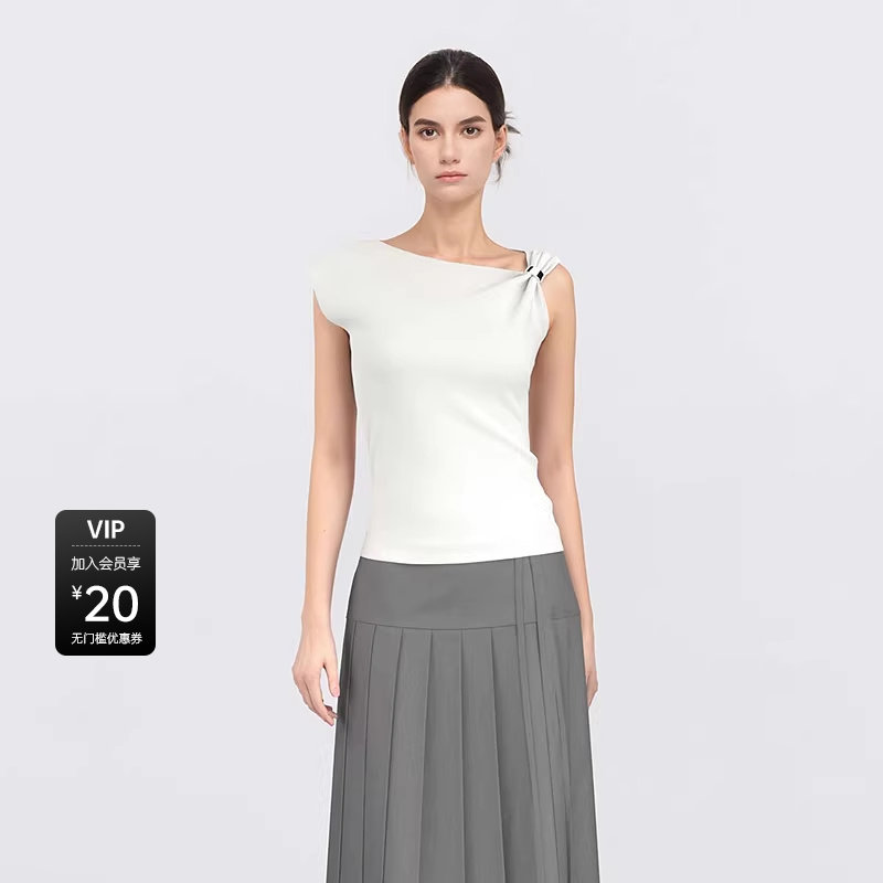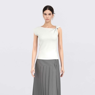 女装 针织衫 时尚 无袖 S25283510 不规则领修身 sdeer圣迪奥夏装