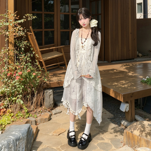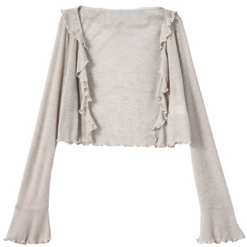 森女部落原创纯色百搭开衫 上衣 薄外套裙子穿搭木耳花边气质空调衫