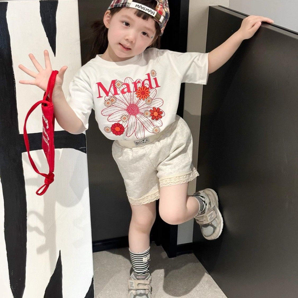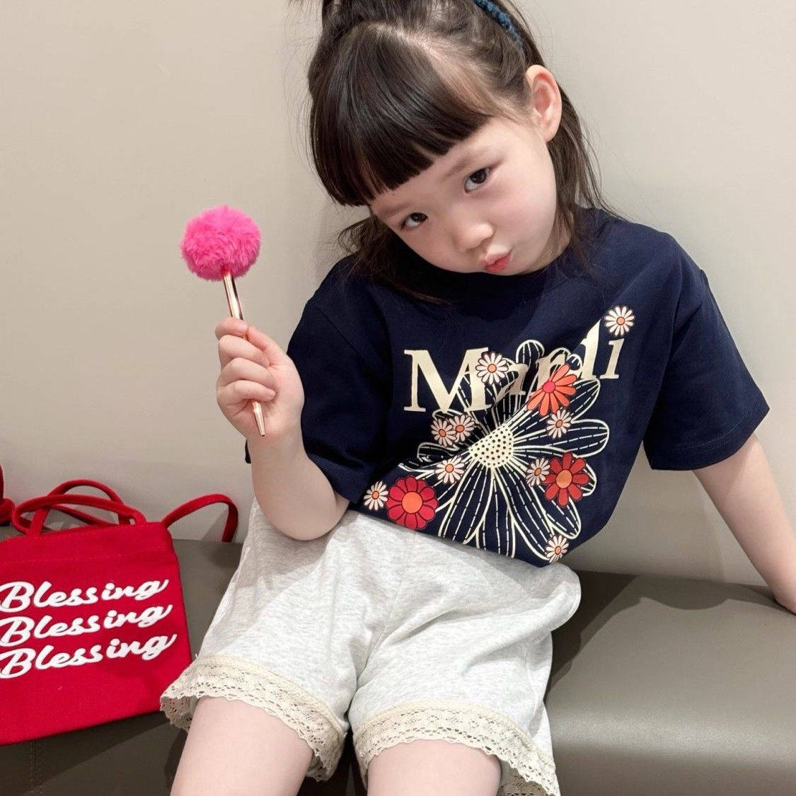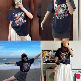 宽松T恤小雏菊可爱女童上衣亲子装 纯棉夏季 衣服潮 体恤短袖 母女装