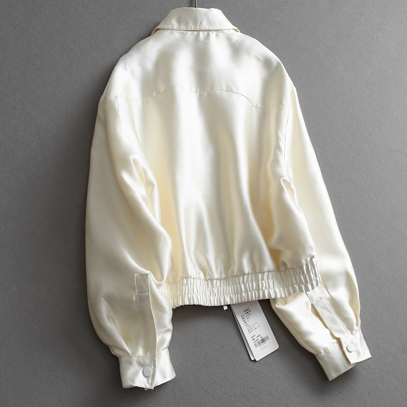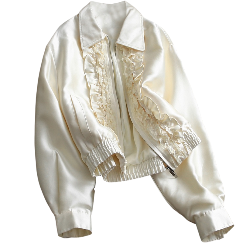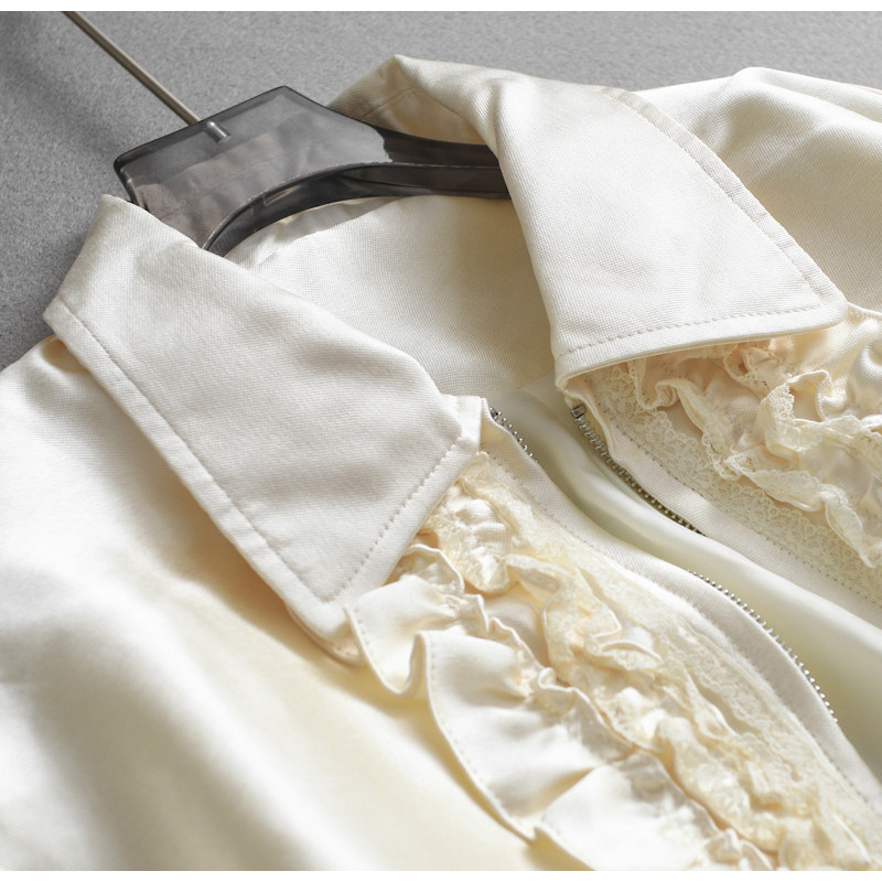 纯色洋气木耳边翻领宽松拉链开衫 女短外套L633 夹克设计感百搭长袖