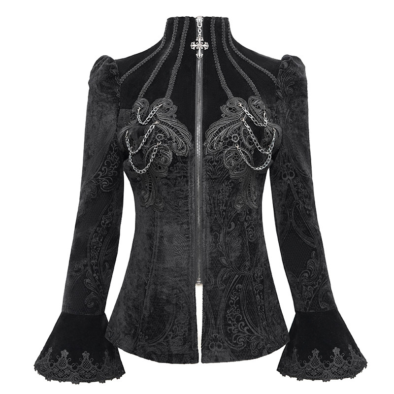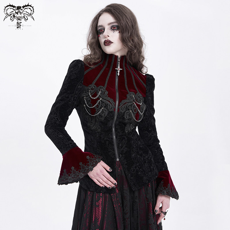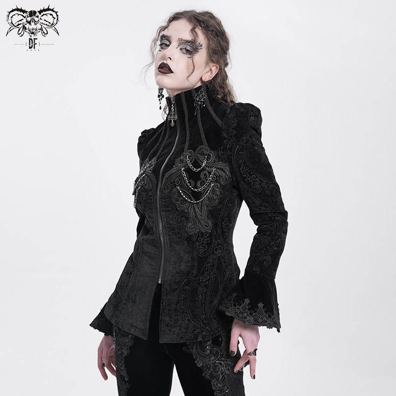 暗黑哥特圆立领绒料外套上衣女CT25801 Devil fashion恶魔时尚