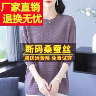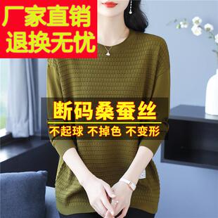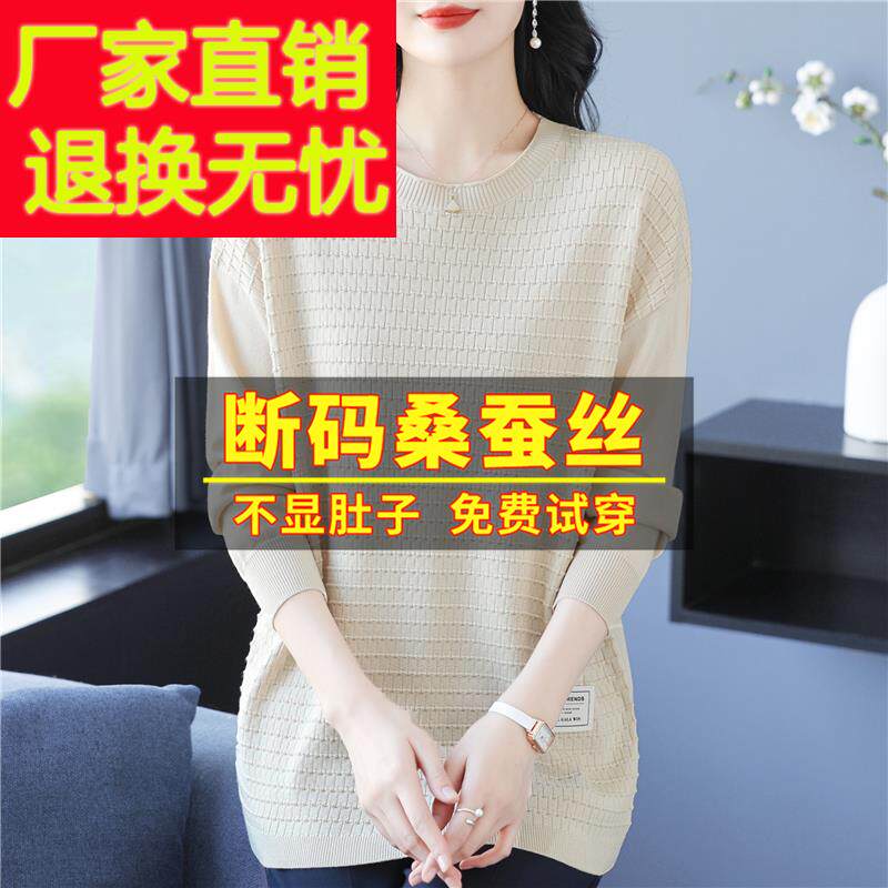 胖mm显瘦遮肚上衣针织打底小衫 桑蚕丝长袖 大码 2024新款 t恤女春装