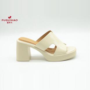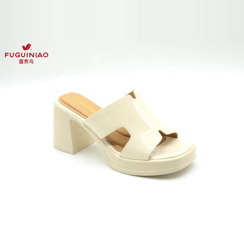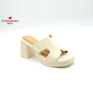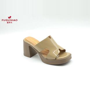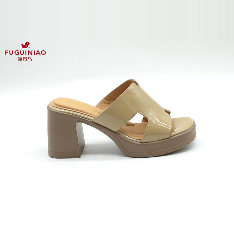 富贵鸟女拖鞋 N4AF730A 2024年夏新款 女鞋 粗跟牛漆皮凉鞋 正品