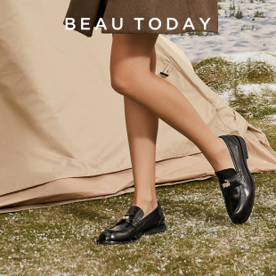 英伦风单鞋 BeauToday焦糖金币复古乐福鞋 女老钱风miu系小皮鞋