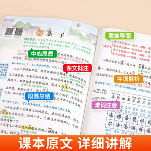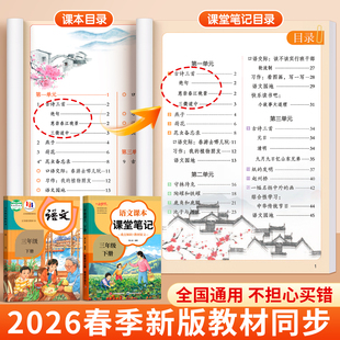 三四五六年级原文讲解学霸笔记练习册 数学英语上册下册课本同步全套小学生随堂笔记教材全解正版 2026新版 三年级语文课堂笔记人教版