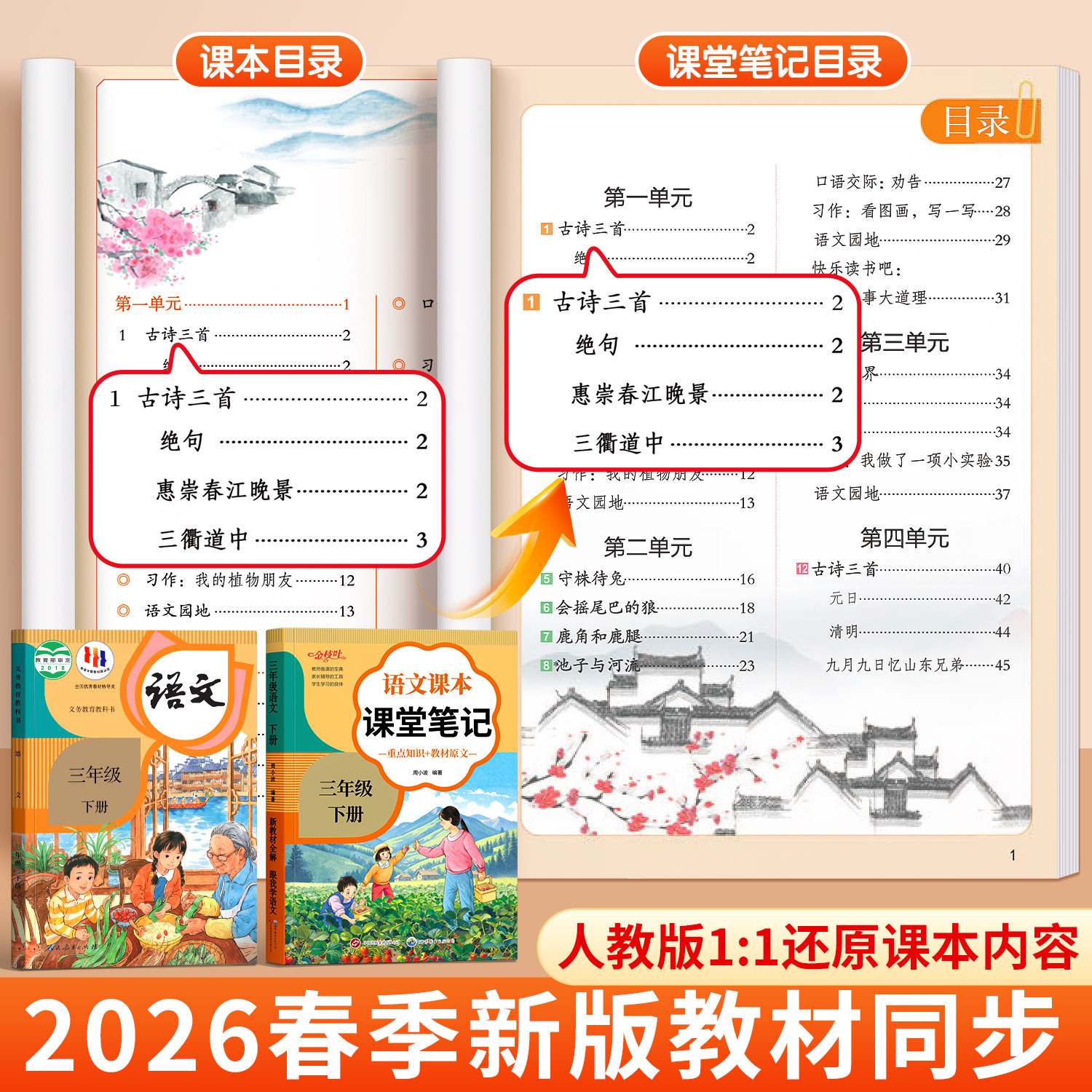 原文讲解学霸笔记练习册 数学英语上册三四五六年级课本同步全套小学生随堂笔记教材全解正版 2026新版 三年级下册语文课堂笔记人教版